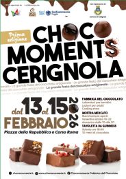 Si svolgerà a Cerignola dal 13 al 15 febbraio “Choco Moments”, la Festa del Cioccolato Artigianale organizzata da FIVA Confcommercio in collaborazione con la nostra Associazione e il patrocinio del Comune di Cerignola. La manifestazione di rilevanza nazionale è dedicata alla promozione dell’artigianato di qualità e alla valorizzazione dei centri urbani