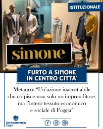 “Esprimiamo piena solidarietà e vicinanza al nostro associato Francesco Simone, vittima di un grave episodio criminoso avvenuto nella notte dell’8 gennaio, quando il suo punto vendita in Piazza Cavour, nel cuore della città, è stato svaligiato.
