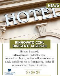 È stato sottoscritto il rinnovo del Contratto Collettivo Nazionale di Lavoro per i dirigenti di aziende alberghiere, con decorrenza dal 1° gennaio 2026 e validità fino al 31 dicembre 2028. L’accordo è stato firmato da Manageritalia e Federalberghi e interessa circa 219 dirigenti a livello nazionale.